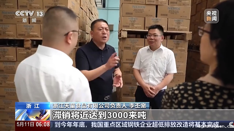浙江天童食品有限公司负责人 李丕宠:这些库存能够今年给它消化掉,关税如果还是这样挺着,美国市场我们也就慢慢给它放掉了。