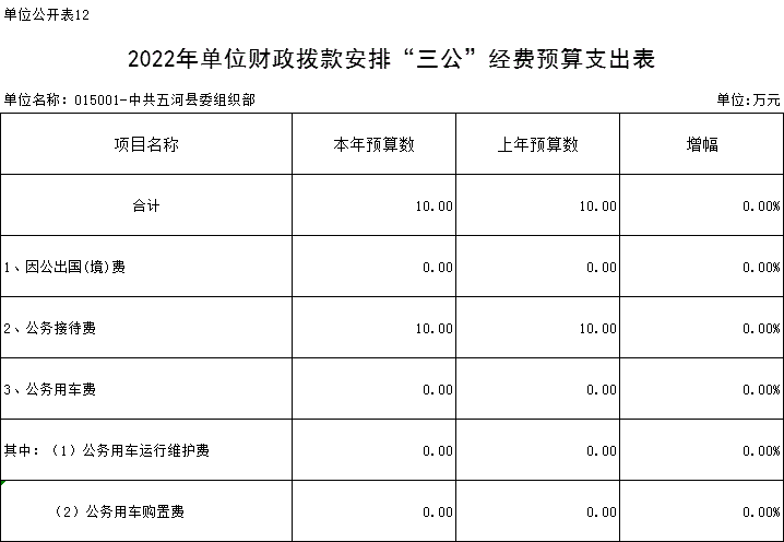 11、“三公”经费:指单位用财政拨款安排的因公出国(境)费、公务用车购置及运行费和公务接待费。其中,因公出国(境)费反映单位公务出国(境)的国际旅费、国外城市间交通费、住宿费、伙食费、培训费、公杂费等支出;公务用车购置及运行费反映单位公务用车购置支出(含车辆购置税)及燃料费、维修费、过桥过路费、保险费、安全奖励费用等支出;公务接待费反映单位按规定开支的各类公务接待(含外宾接待)支出。